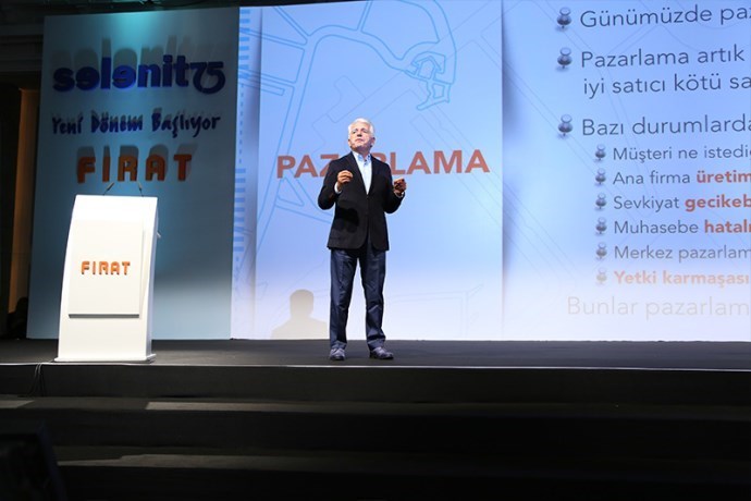 أول كلمة في ندوة سلنيت لانسمان ألقاها الأستاذ البرفسور / إلهان إردوغان، الذي يقوم بالأعمال الإستشارية لفرات منذ 20 عاماً. وركز في كلمته على التطلعات اليومية في التسويق وتغير تصرفات الزبائن، وترك حق إلقاء الكلمة بعده للدكتور / نفذت دمير، رئيس مجلس إدارة فرات، الذي أكد في كلمته على أن تشكيلات البائعين والعاملين هم عائلة فرات وأنهم عائلة قوية، كما أكد على مبدأ الإستمرارية في المؤسسات. بعد هذا التأكيد قام / دمير، بدعوة الدكتور السيد / مهتاب أولو جفيز إلى المنصة، التي تقوم بتقديم خدماتها كإدارية على المستوى العالي منذ أكثر من 20 عاماً في أقسام تكنولوجيا وتخطيط فرات، والإنتاج والتسويق، وأكدت أولوجفيز متطرقةً إلى النجاحات السابقة، ولفتت الإنتباه إلى إلى مساهمتها "كمديرة المشروع" في مشروع تأمين المياه لقبرص الذي تم تحقيق إفتتاحه بتاريخ 17/10/2015.