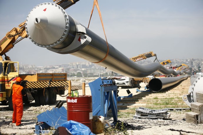 6 adet 500 metrelik PE boruların her birinin ağırlığı 110 ton.