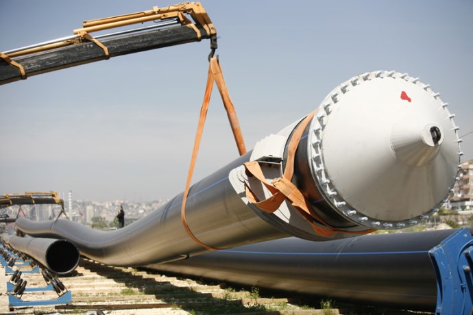 Boruların üretimi ile ilgili bilgi veren Fırat Plastik AŞ Altyapı Teknik Müdürü Sn. Mehmet Erdoğdu " Uzun borular, daha az kaynak yapılmasını, mesafelerin eksiksiz ve kısa sürede döşenmesini sağlıyor. Boruların az ekle kaynak yapılması da hidrolik basınç kayıplarını minimum seviyede tutuyor. Bu proje için üretilen boruların denizden yüzdürülerek götürülecek olması sebebi ile Büyükçekmece sahilinde mobil üretim tesisi kurulması gerekliydi. Bu tesisi 15 gün gibi kısa bir sürede kurduk. Ve üretimimiz toplam 30 gün sürdü. Ürettiğimiz boruları denize AR-GE departmanımızda geliştirdiğimiz yürüyen tekerlek sistemi ile ulaştırdık " şeklinde görüşlerini bildirdi.