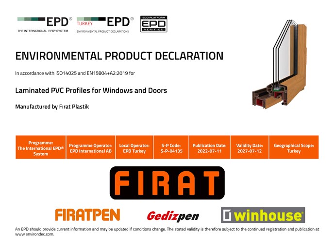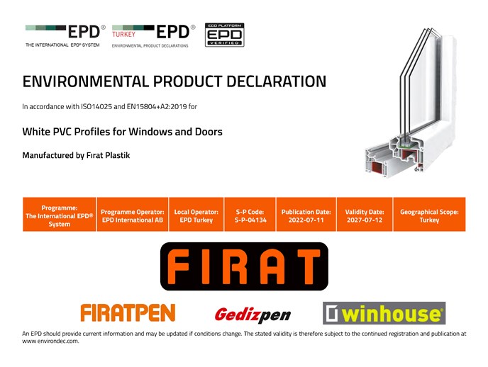 One of the commitments we made in the perspective of sustainability is the 'Environmental Product Declaration' for the products we manufactured in 2015. Our organization is the first company in Turkey to commit to the Environmental Product Declaration for PVC Window and Door Profiles applicable in all markets, internationally certified and compliant with European standards.(https://www.environdec.com/en/Detail/epd629#.VV2Zo_ntmko)