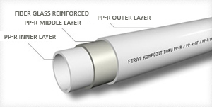Fırat Composite Pipe and Fittings produced with combination of PP-R (Polypropylene Random Copolymer) raw material and fiber glass reinforced polypropylene raw materials is an indispensable solution in today’s indoor hot and cold water systems with its advantages such as smooth and bright internal surface, calcification and rust-free, hygienic and easy to mount. Used in any kind of indoor hot and cold water pipe systems, Fırat Composite Pipe and Fittings are produced from the Type-3 class raw material, also called as PP-R (Polypropylene Random Copolymer).