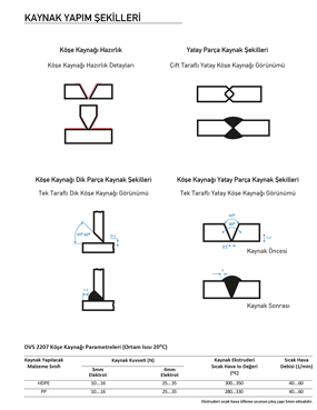Kaynak yapılacak malzemeyle kaynak elektrodu aynı sınıf polimer; kaynak elektrodunun çapı 3-4 mm olmalıdır.