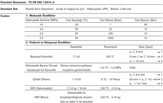 | Özellik | Birim | Test Metodu | Değer | |