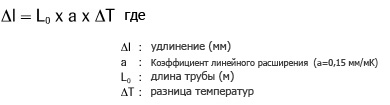 Линейное расширение труб рассчитывается согласно нижеприведенной формуле: