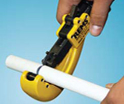 Трубу разрезайте ровно специально для этого предназначенными острыми ножницами с необходимой для монтажа длиной в вертикальном направлении по оси трубы.