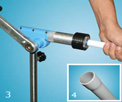 При помощи аппарата открытия муфты расширьте входную часть трубы так чтобы вошел фитинг.