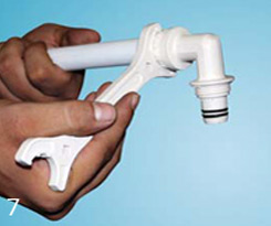 При помощи специального ключа PPSU закрепите гайку к фитингу. При необходимости открытия гайки ( на фитинге PPSU имеется замки безопасности) опять таки используйте специальный ключ PPSU.Техника строительства моста из труб TIG